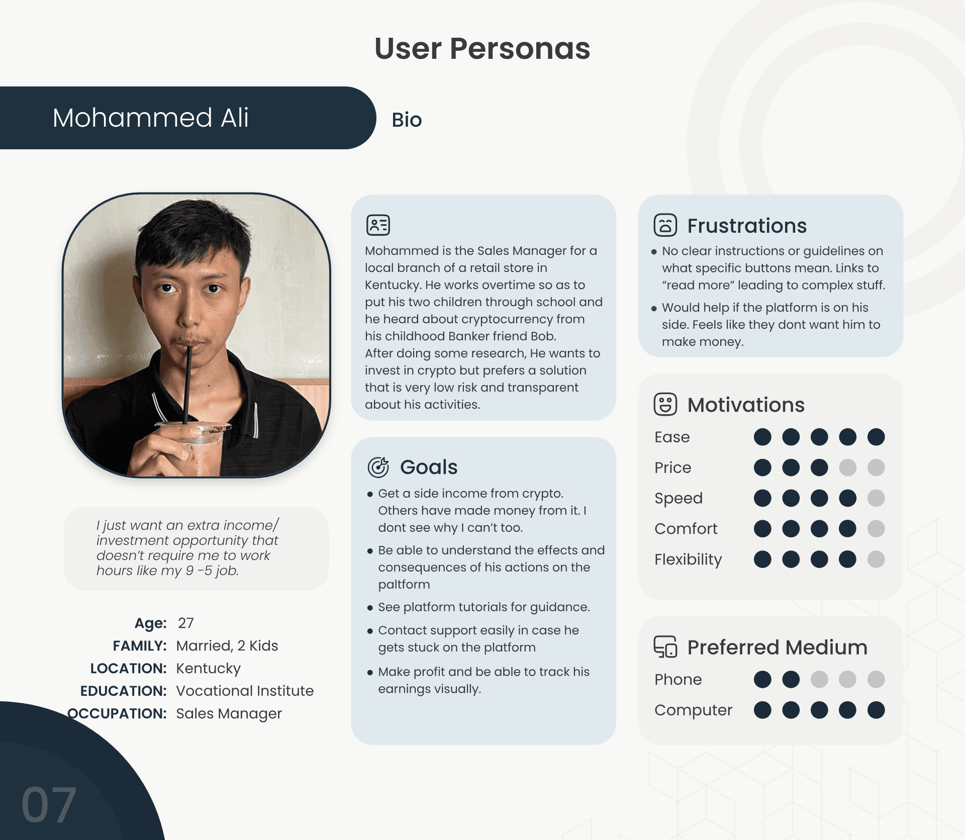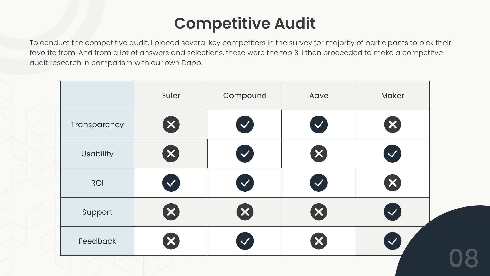 I conducted a series of 12 in-depth interviews with both novice and seasoned DeFi users. We also ran 2 online surveys that gathered feedback from over 200 respondents. Sourcing this feedback was from the community… I sent a message in the Discord announcement server, and we got lots of our users that showed interest to participate in the ux research.