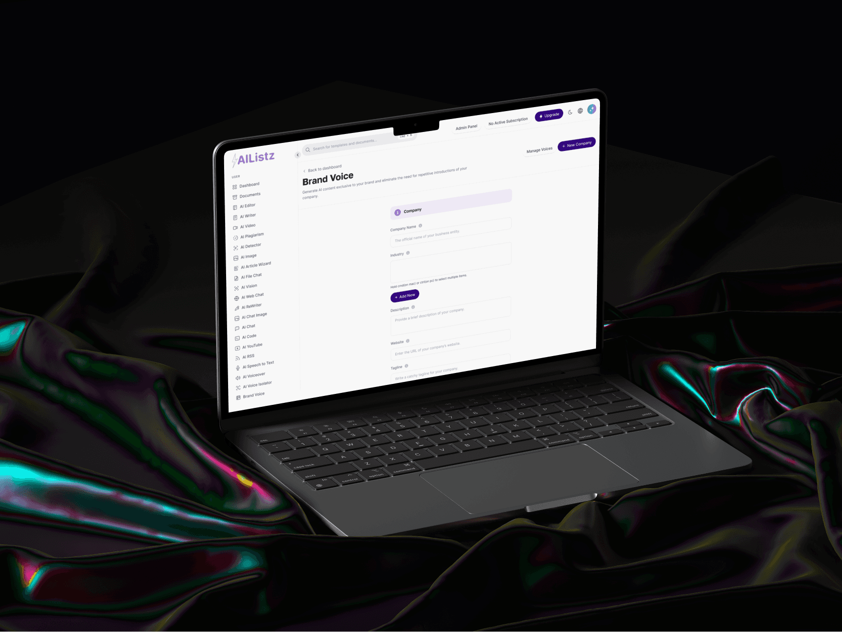 Scalable Design: Accommodate multiple AI features (AI Image Generator, Speech-to-Text, etc.) under a consistent, brand-aligned interface.
